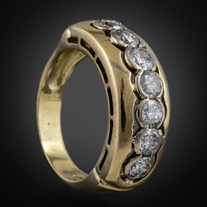 Anillo en oro amarillo de 18 kt con banda de siete brillantes.