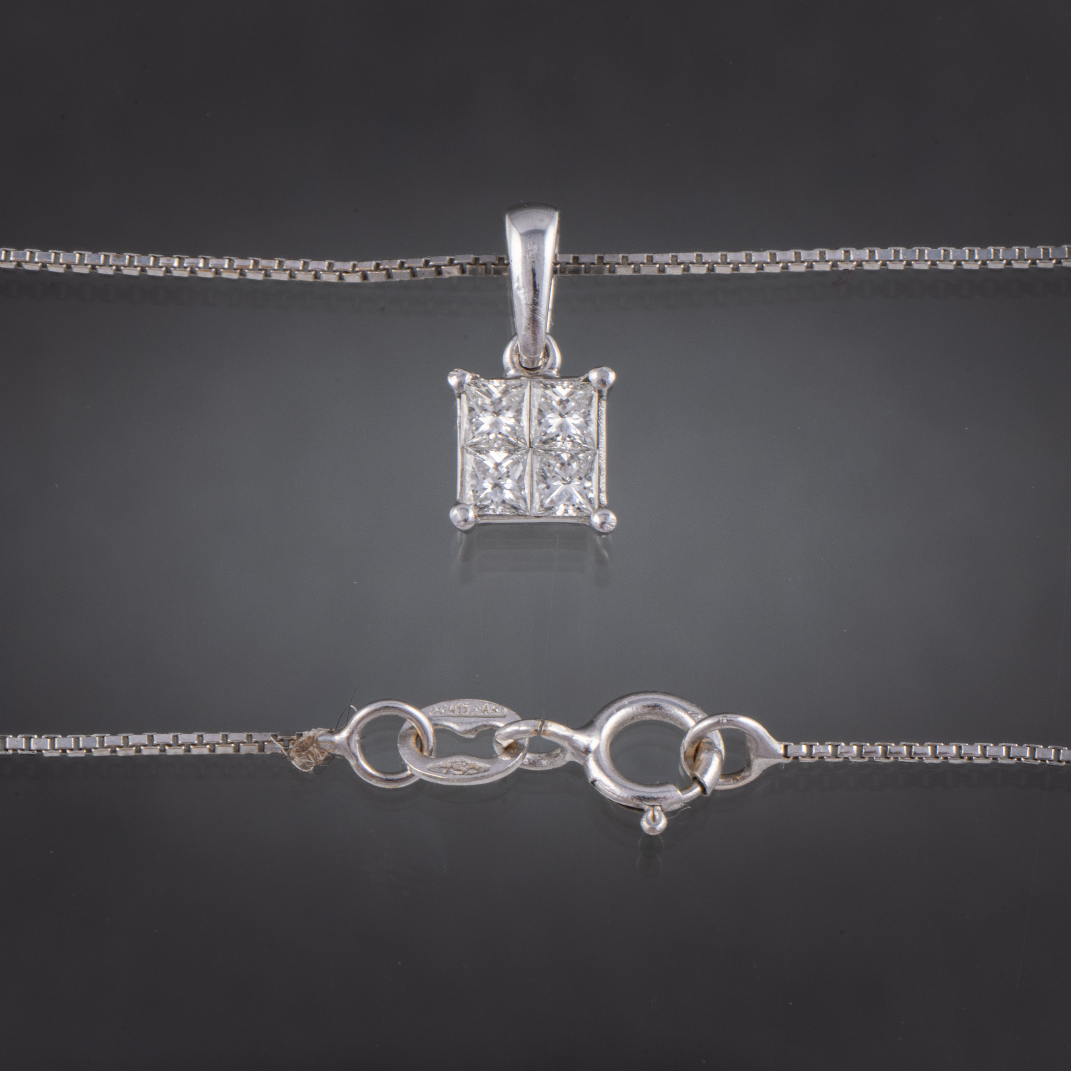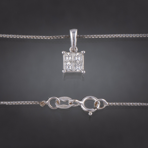 Cadena y colgante en oro blanco de 18kt con diamantes talla princesa.