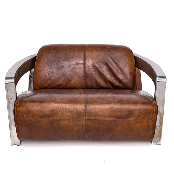 Sofá en acero cromado tapizado en piel color marrón del siglo XX