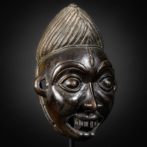 Máscara africana en bronce posiblemente Ngoin del Camerún del siglo XX.