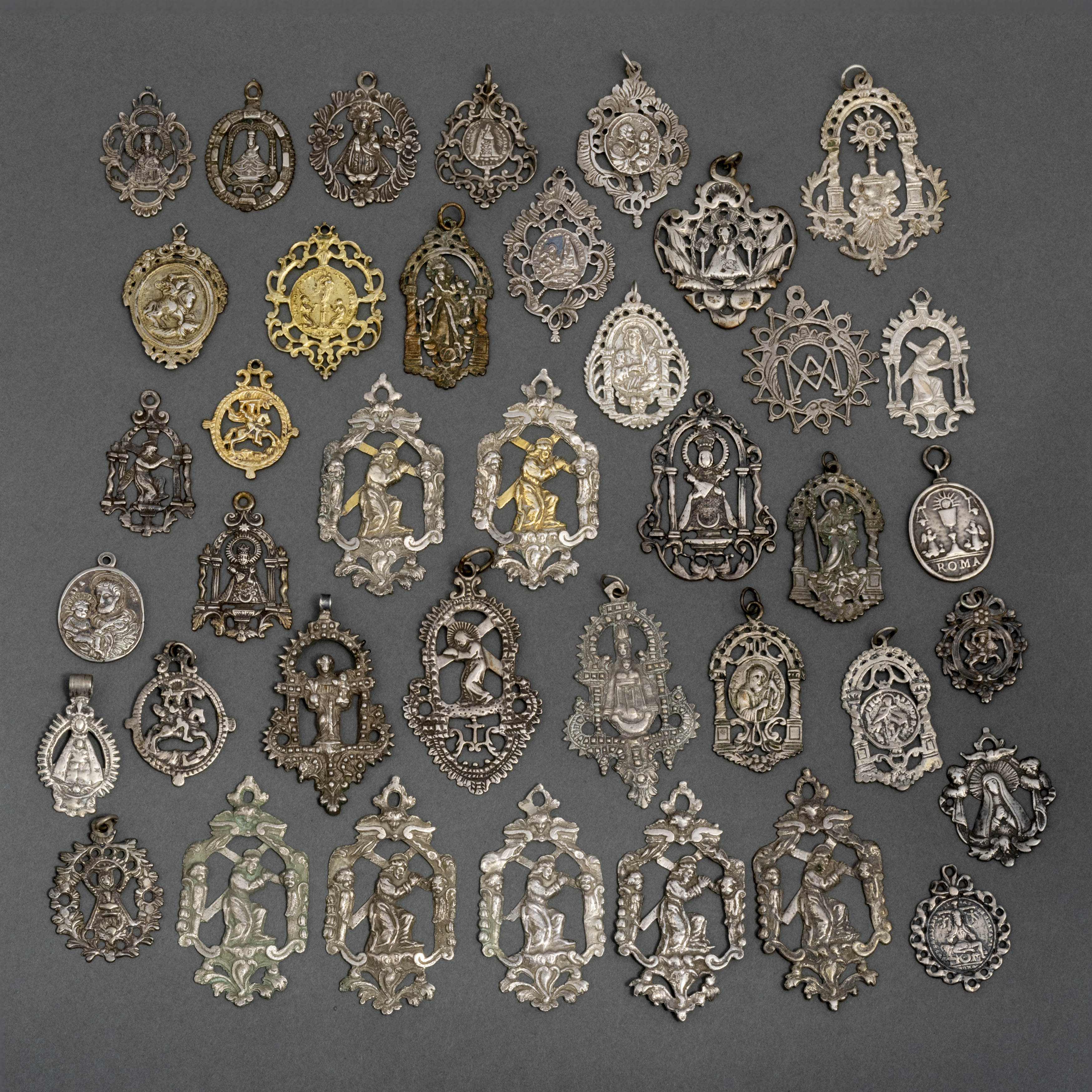 Conjunto de 39 medallas en plata del los siglos XVIII y XIX