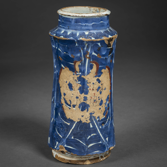 Albarelo o bote de farmacia regalat en cerámica de Manises o Catalán en loza del siglo XV-XVI