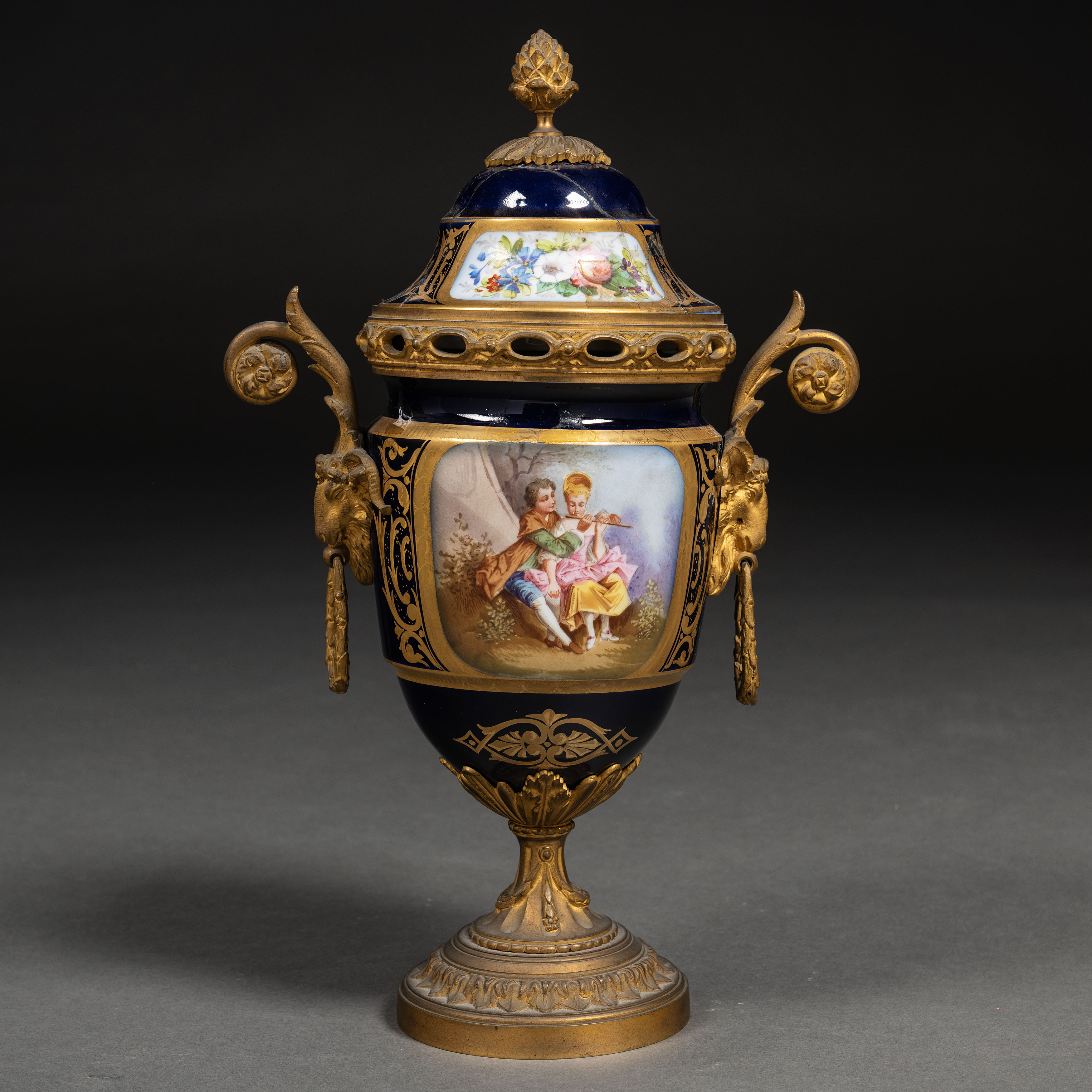 Centro en porcelana estilo Sévres con montura en bronce dorado del siglo XIX