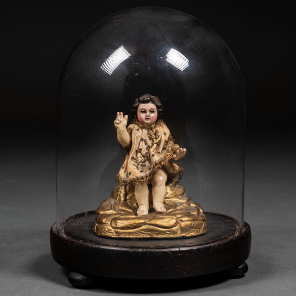 Measurements: Niño Jesús: 12 x 7,5 cms. Con base: 13 x 11 cms.