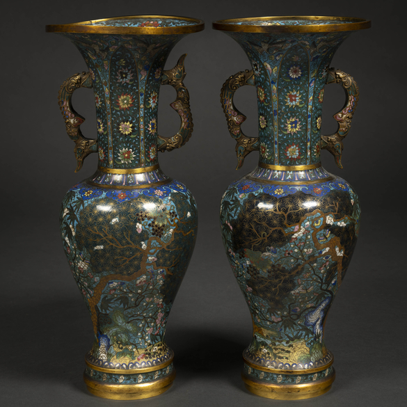 Pareja de jarrones chinos en esmalte cloisonné del siglo XIX